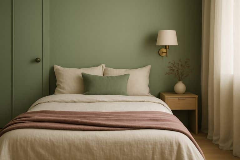 Entre as cores Japandi favoritas, o verde sálvia se destaca por ser discreto, mas cheio de personalidade. Ele traz frescor e conexão com a natureza, sem destoar da estética minimalista.
