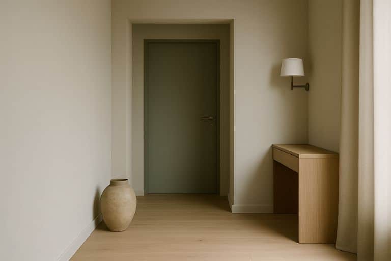 - Corredores e halls: mesmo áreas de passagem podem se beneficiar do espaço vazio. Um único vaso de cerâmica no chão ou uma luminária discreta já são o suficiente para trazer vida, sem precisar de mais.