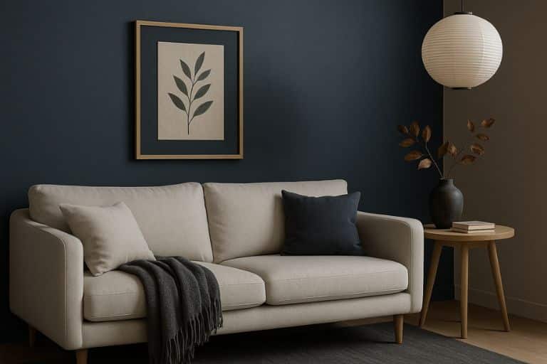 Como aplicar: Um tapete cinza profundo com sofá off white, ou uma parede em azul petróleo combinada com luminárias de papel e móveis em madeira clara.